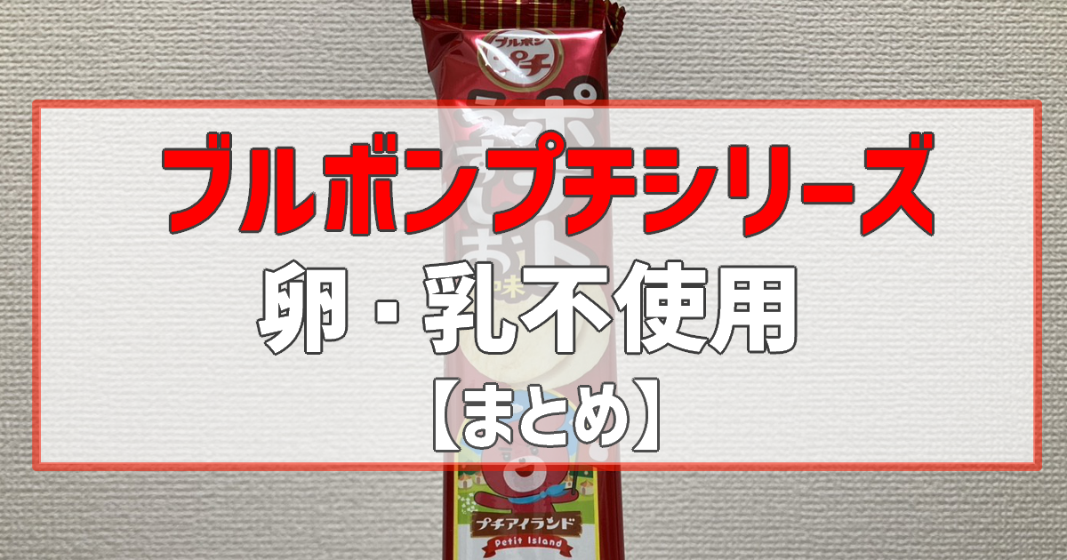 今回はお菓子メーカー『ブルボン』さんから発売されている「プチシリーズ」の中で、卵・乳製品不使用の製品を紹介していきたいと思います。